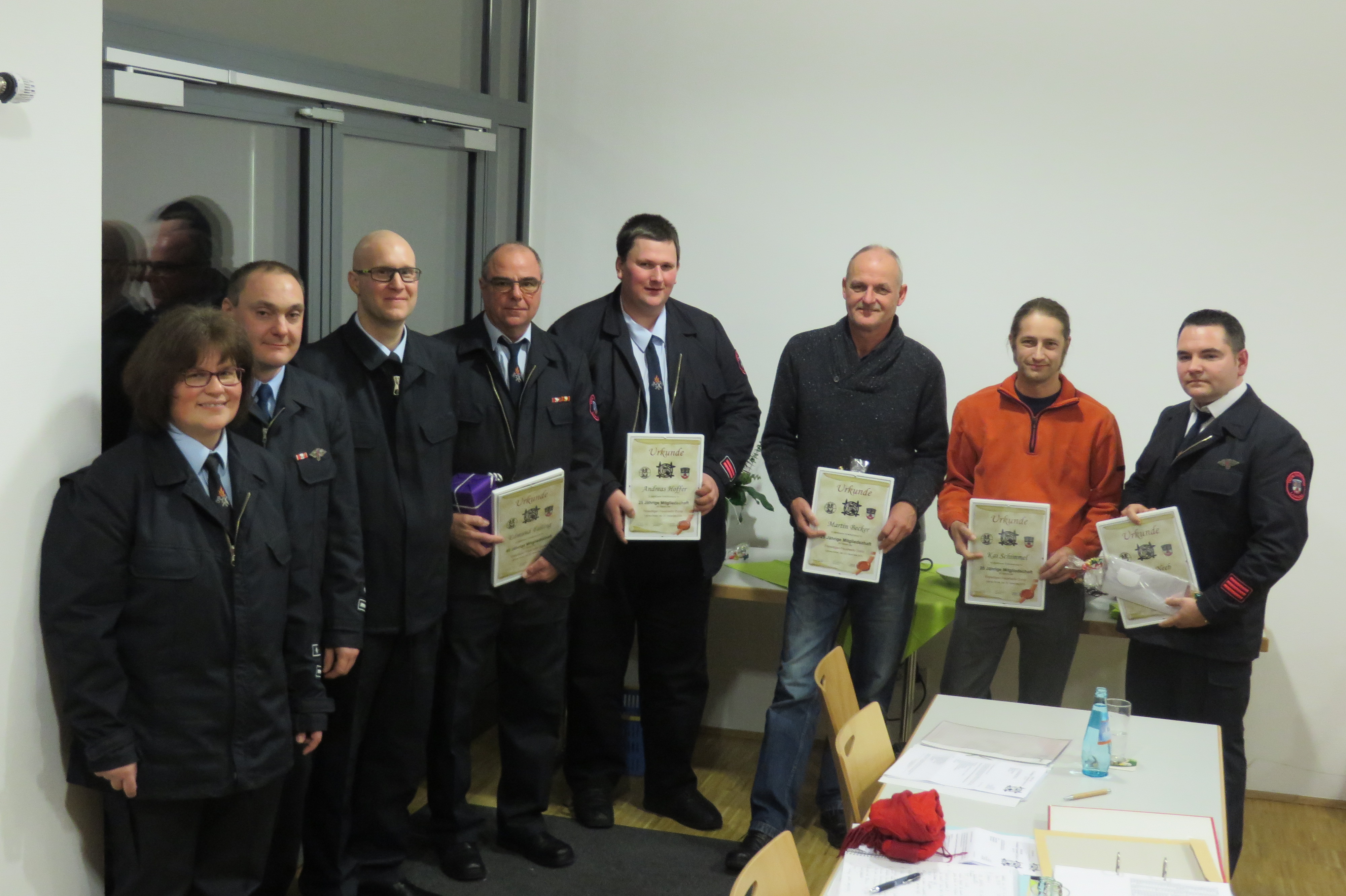 Nachdem die Berichte der Schriftführerin und der Rechnungsführerin, sowie der Kassenprüfer vorgestellt worden waren, wurde der Vorstand entlastet. Geehrt wurden in diesem Jahr Edmund Failing (40 Jahres aktive Vereinszugehörigkeit), Arnim Schneider (40 Jahre Vereinszugehörigkeit), Andreas Hoffer (25 Jahres aktive Vereinszugehörigkeit), Thomas Neeb (25 Jahre aktive Vereinszugehörigkeit), Martin Becker (25 Jahre Vereinszugehörigkeit) und Kai Schimmel (25 Jahre Vereinszugehörigkeit). Besprochen wurde unter anderem auch die Wanderung des Feuerwehrvereins im Juli, sowie die Beschaffung eines Laptops, um unter anderem Verwaltungsaufgaben der Einsatzabteilung direkt im Feuerwehrhaus durchführen zu können.