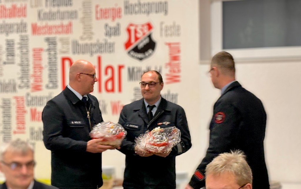 Zum Abschluss der Versammlung ehrte der Verein langjährige Mitglieder für ihre Treue und ihr Engagement im Ehrenamt. Der Vorstand dankt allen Anwesenden für einen produktiven Austausch und wichtige Beschlüsse für die Zukunft des Vereins. Ein besonderer Dank galt den langjährigen Wehrführern Jens Oberding und Benjamin Nolte für ihren großartigen Einsatz.
